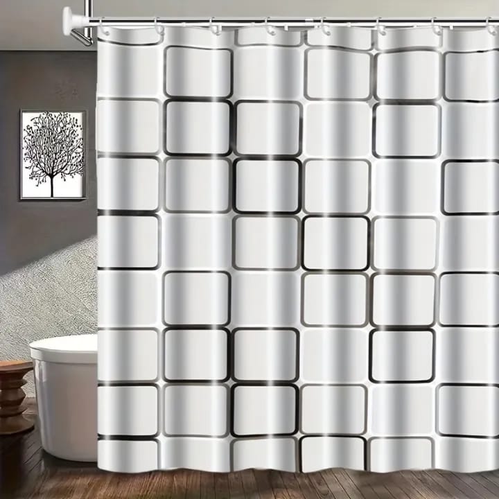 Upgrade your bathroom with this waterproof shower curtain π Designed to keep water inside and your space clean & dry. Comes with 12 strong hooks for easy installation and a stylish look.