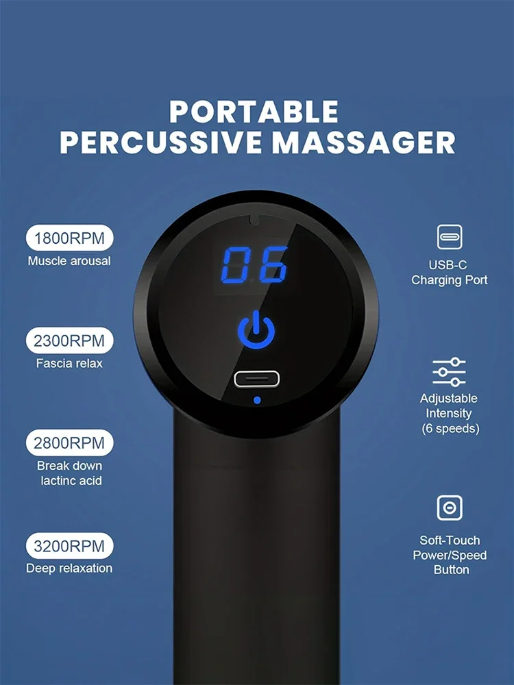 A powerful gun massager designed to reduce muscle pain, stiffness, and fatigue. It features multiple speed levels and interchangeable heads for targeted deep tissue therapy, helping you relax and recover anytime, anywhere.