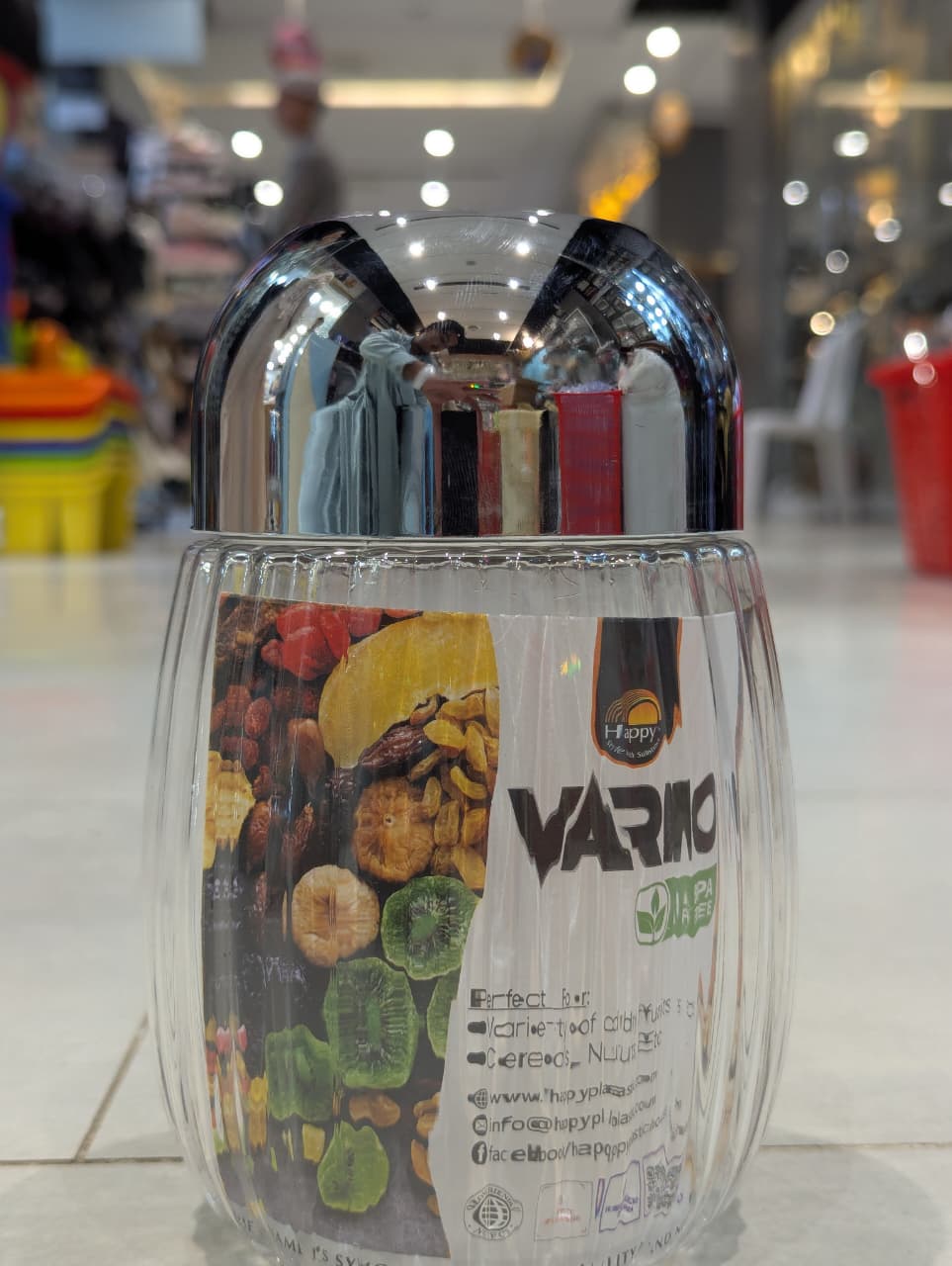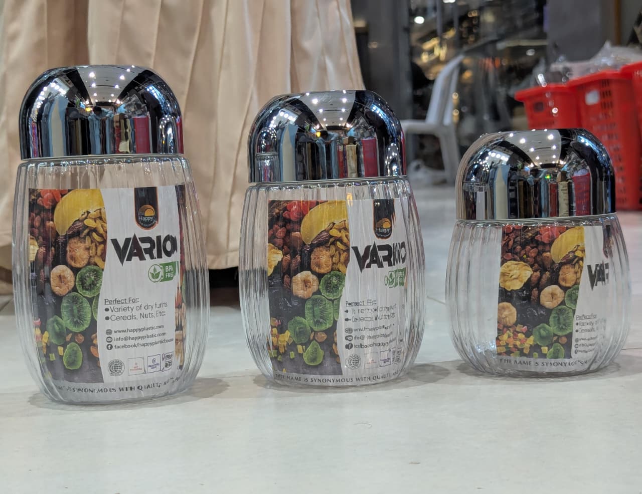 Store your dry foods, snacks, or household items in style with the Happy Crown Gold Plastic Jar. Durable, lightweight, and easy to use for everyday storage