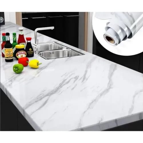 Upgrade your kitchen with this elegant marble sheet. Easy to cut, apply, and clean, it protects surfaces while adding a sleek, modern look to your countertops and cabinets.